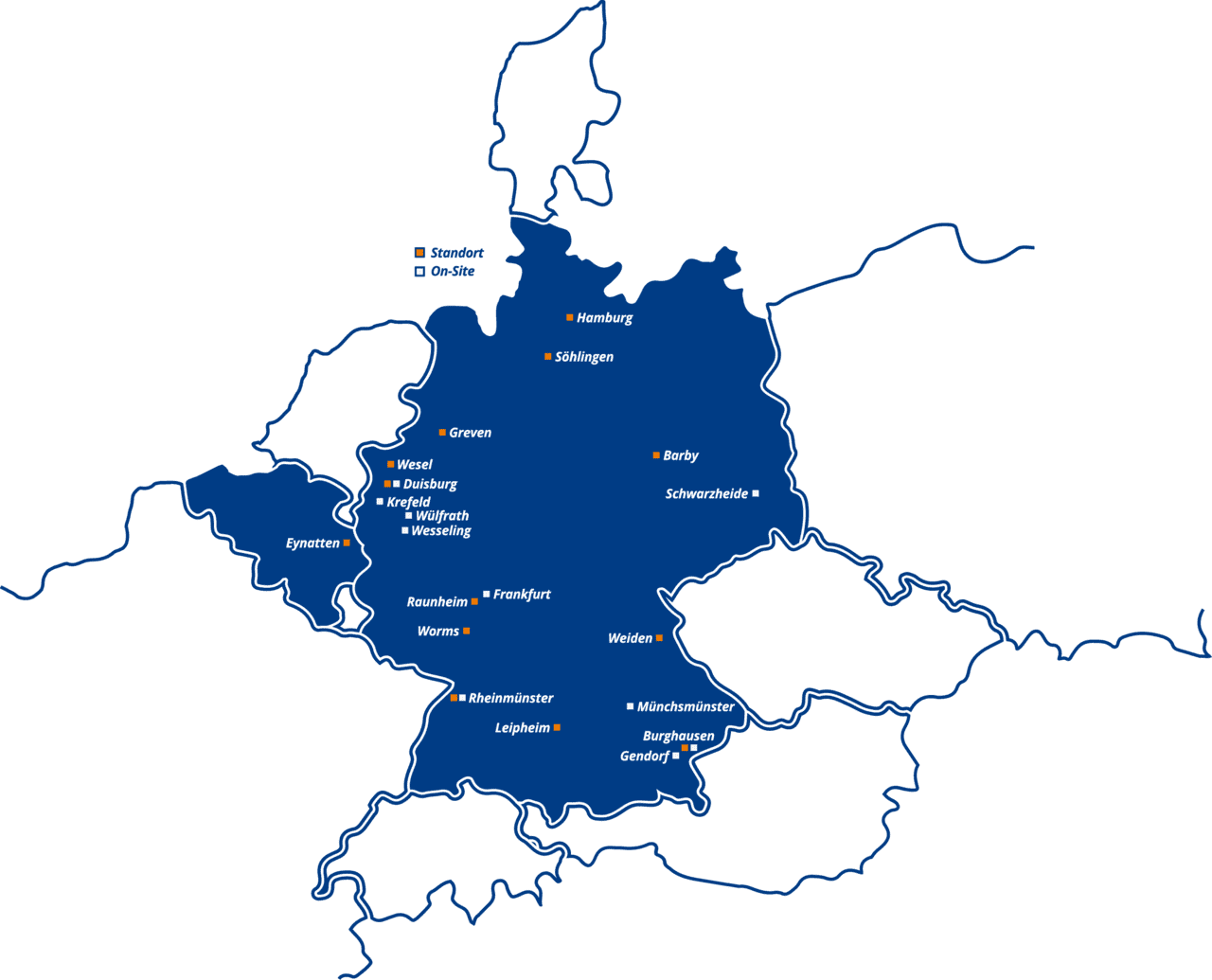 In Deutschland und in Belgien sind wir mit mehr als 20 Standorten und modernen Logistikzentren bestens vernetzt. Dank guter Verkehrsanbindung sind kurze Wege garantiert – auch für Ihre Fahrt zur Arbeit.
