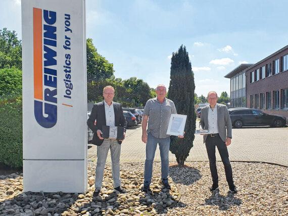Belohnung für herausragende Leistung: Ab diesem Jahr ehren wir jährlich unsere drei besten Azubi-Absolventen mit einem Pokal, Medaillen und Urkunden. Zusätzlich bekommen sie einen Geldpreis von insgesamt 2.700 Euro ausgezahlt. Das Debüt für den „GREIWING Azubi Award“ machen Lennart Fischer, Mirco Brinker und Daniela Haferkamp. Seit Jahren setzen wir auf die Förderung von Nachwuchskräften. Der Award ist ein weiteres Bestreben, die nächste Generation für die Logistik zu begeistern.
