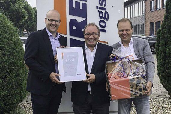Belohnung für herausragende Leistung: Ab diesem Jahr ehren wir jährlich unsere drei besten Azubi-Absolventen mit einem Pokal, Medaillen und Urkunden. Zusätzlich bekommen sie einen Geldpreis von insgesamt 2.700 Euro ausgezahlt. Das Debüt für den „GREIWING Azubi Award“ machen Lennart Fischer, Mirco Brinker und Daniela Haferkamp. Seit Jahren setzen wir auf die Förderung von Nachwuchskräften. Der Award ist ein weiteres Bestreben, die nächste Generation für die Logistik zu begeistern.