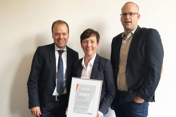 Seit nunmehr 25 Jahren ist Birgit Lanvers unsere gute Seele am Empfang. Wir ehrten sie jetzt zum Betriebsjubiläum. „Frau Lanvers ist eine sehr kompetente und stets freundliche Mitarbeiterin. Diese Eigenschaften sind am Empfang besonders wichtig. Für ihr Engagement danken wir ihr sehr“, sagte Prokurist Matthias Gehrigk. Mit diesen Worten würdigte er die Einsatzbereitschaft von Birgit Lanvers.