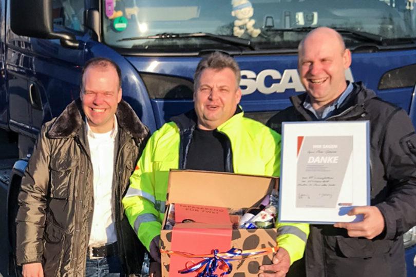 „Sven Culmsee ist ein vorbildlicher und vorausschauender Fahrer, der sich nicht zuletzt durch seine langjährige Erfahrung auszeichnet. Für schwierige Situationen findet er schnell die richtige Lösung“, lobt GREIWING-Disponent Ulrich Daßmann. Gemeinsam mit Roland Greiwing, Geschäftsführender Gesellschafter, beglückwünschte er Culmsee bei einer Feierstunde zu dessen Dienstjubiläum. Als Anerkennung für seine langjährige Unternehmenstreue erhielt der Jubilar eine Urkunde und einen Präsentkorb.