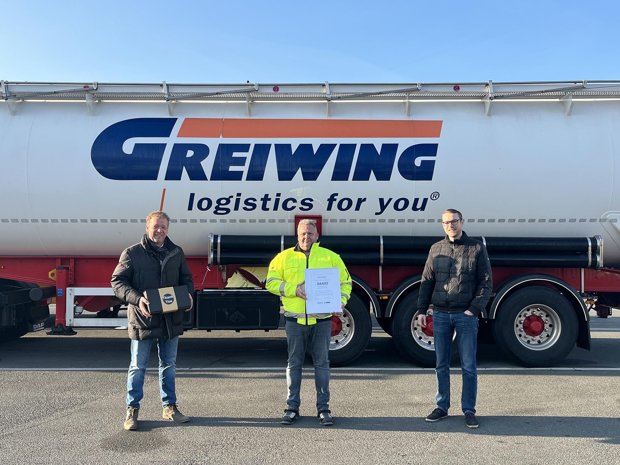 „Nicht nur in Zeiten des Mangels an Berufskraftfahrenden sind Mitarbeitende wie Sven Culmsee Gold wert. Wir sind sehr stolz, so verlässliche Kolleginnen und Kollegen in unseren Reihen zu wissen, die mit so viel Leidenschaft für uns tätig sind“, sagt unser Geschäftsführender Gesellschafter Jürgen Greiwing.
